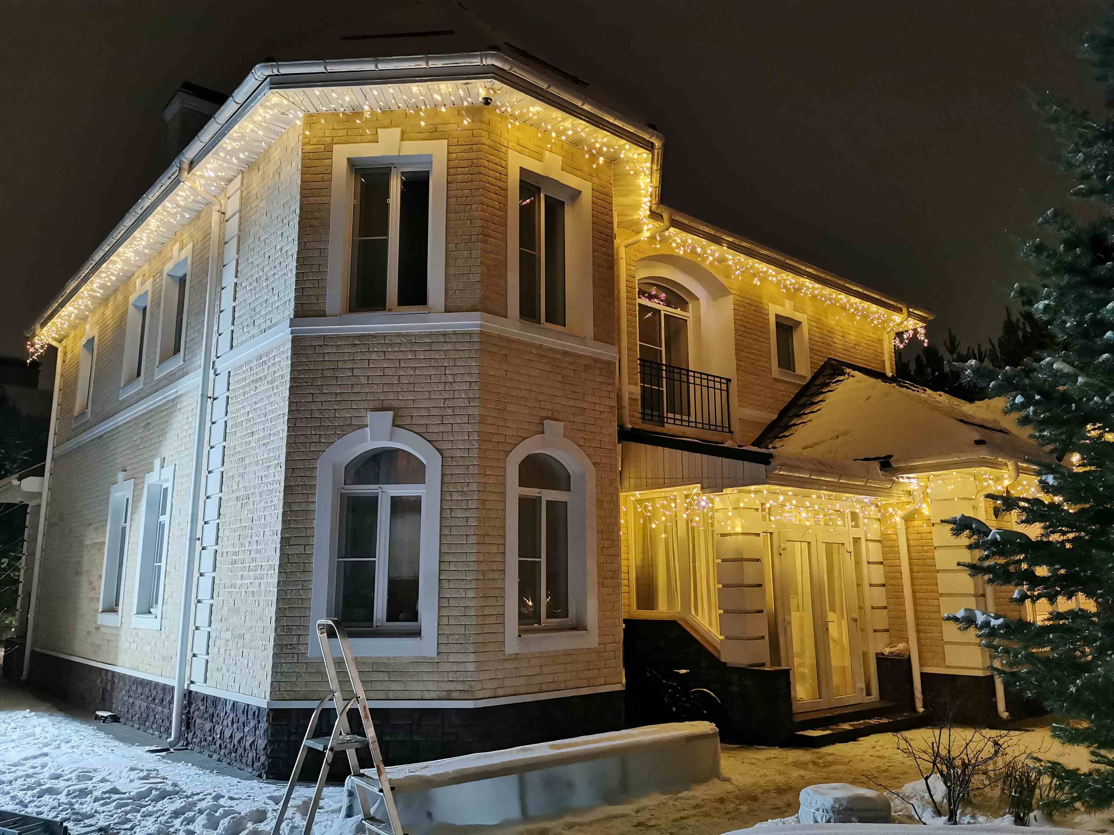 В коттеджном посёлке Монтевиль к нам обратился клиент, который хотел создать праздничное настроение для своей второй половины и выделить дом на фоне соседей, у которых уже была установлена подсветка. Важно было, чтобы световое решение выглядело тёплым и уютным, при этом клиент хотел минимизировать собственное участие в проекте, так как часто уезжает в командировки. Задача стояла реализовать всё под ключ, уложиться в бюджет и настроить простое дистанционное управление.