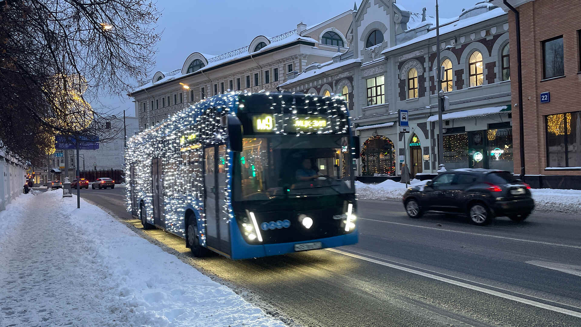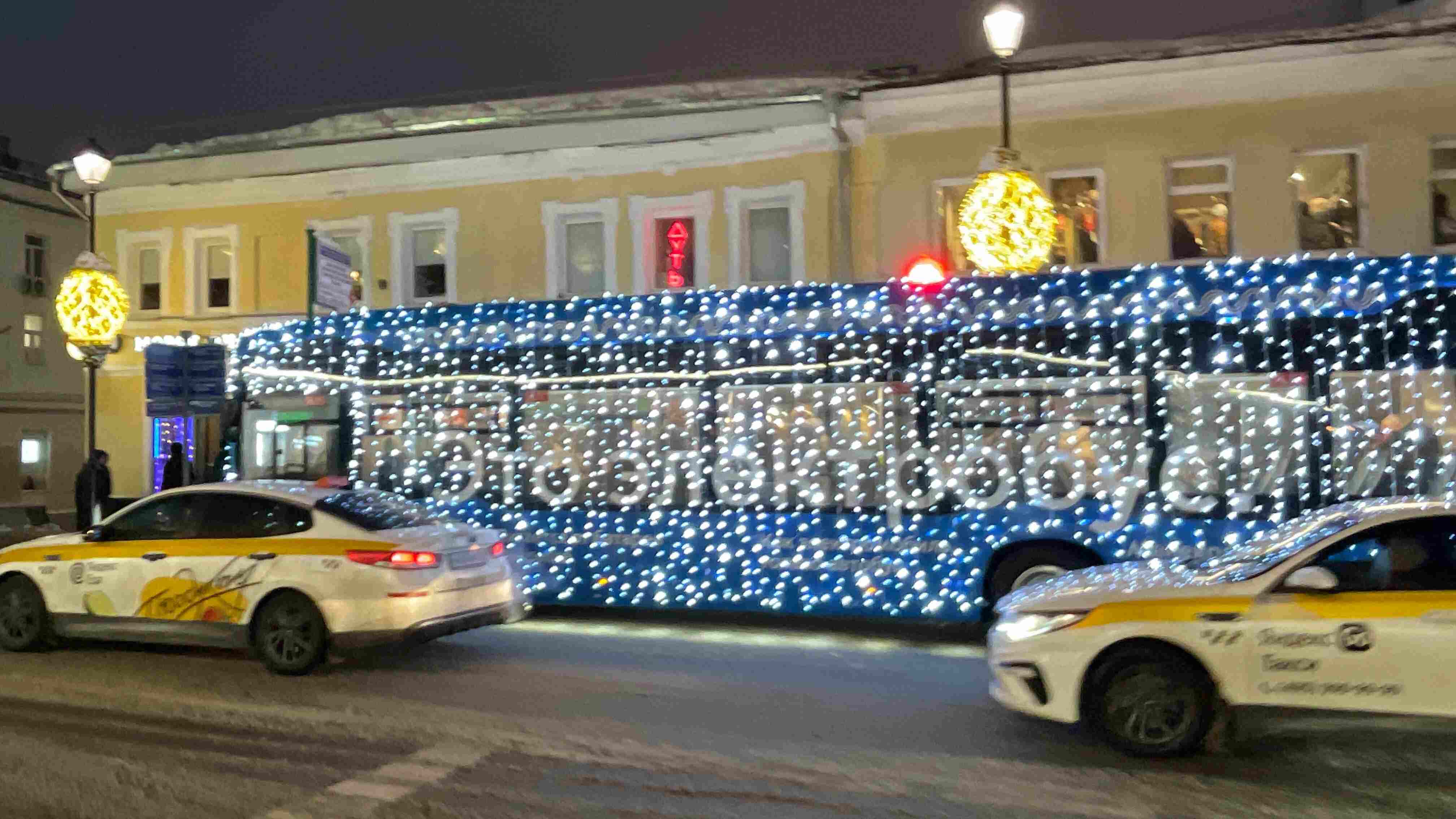 В Москве городской электробус был украшен гирляндой-нитью холодного белого свечения. Сотни огней полностью покрывают кузов транспорта, превращая его в яркий новогодний символ на улицах города. Такой проект создаёт праздничное настроение и привлекает внимание жителей и туристов.