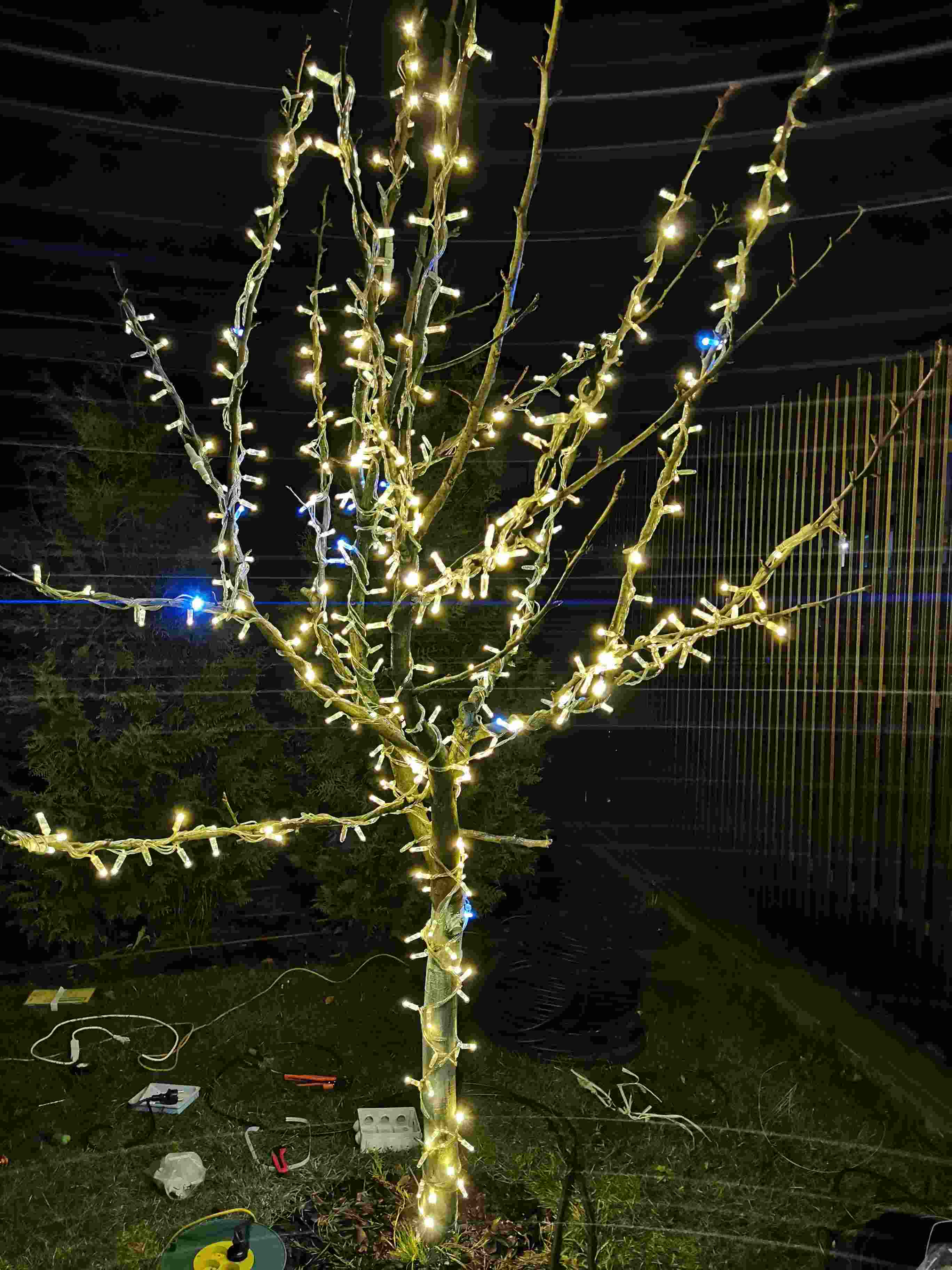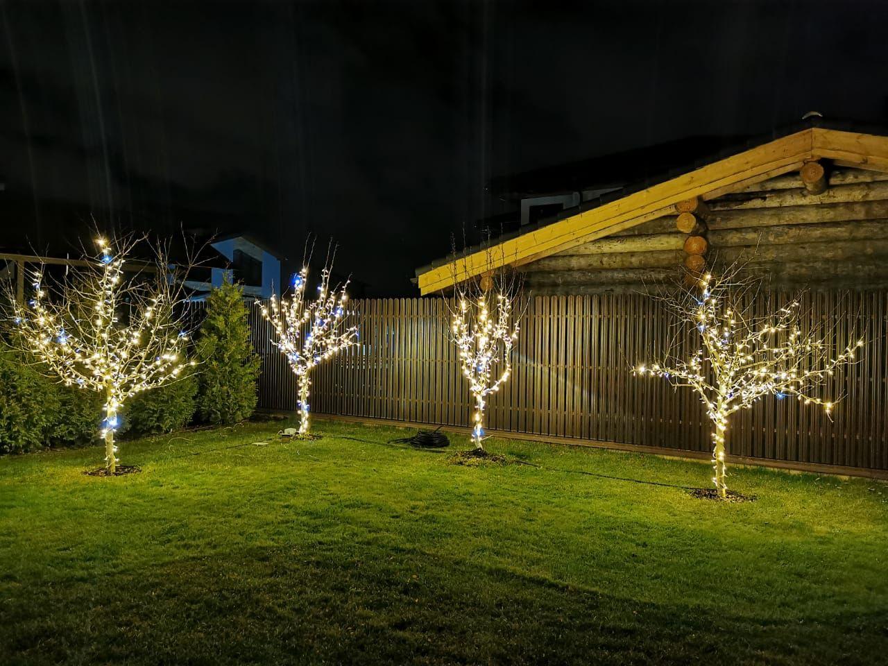 Все работы были выполнены за один день: в проекте участвовали один монтажник и один электрик. Решение получилось аккуратным, практичным и в то же время очень тёплым — теперь участок вечером выглядит нарядно и гостеприимно.