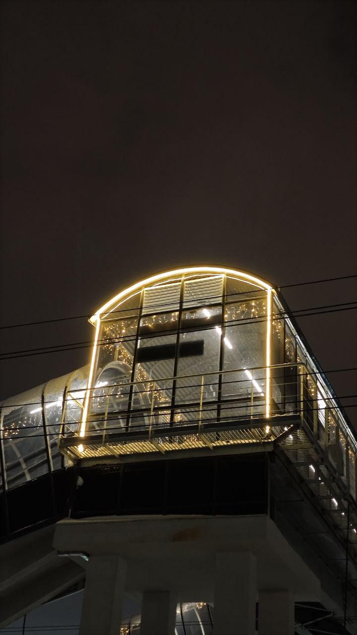 В итоге подсветка была смонтирована чётко и без вмешательства в работу станции. Арки получили выразительное обрамление гибким неоном, а переходы — уютную праздничную атмосферу благодаря бахроме. Объект был сдан точно в срок, и заказчик остался доволен результатом.