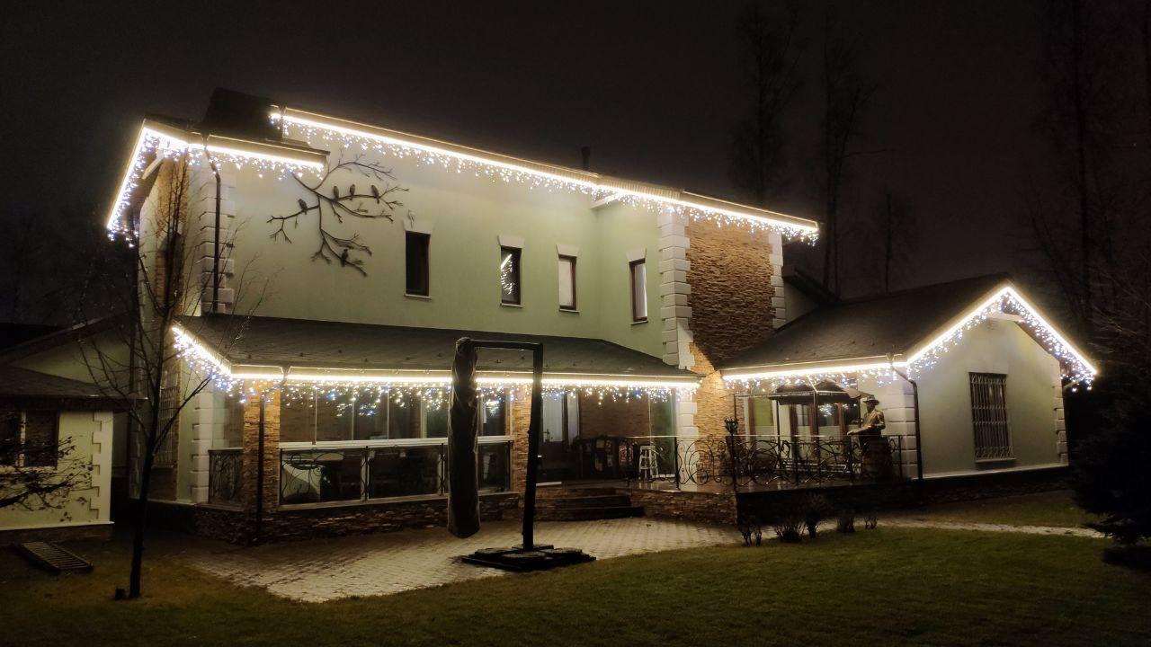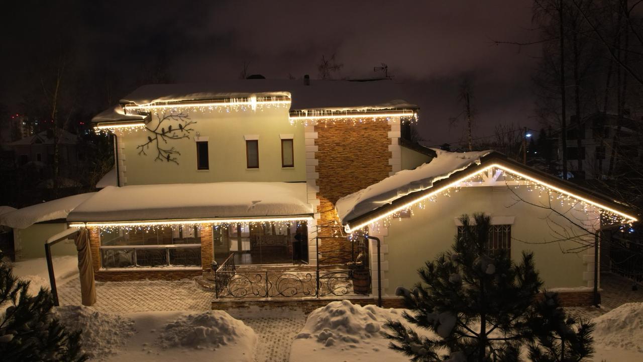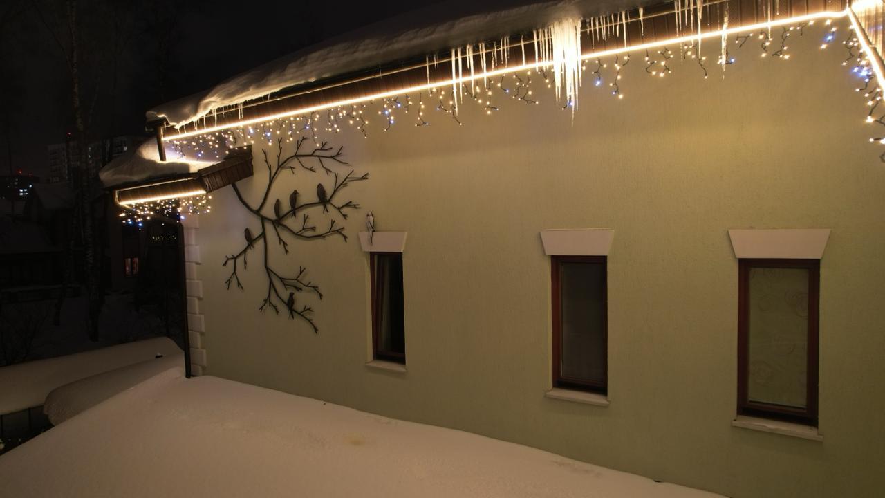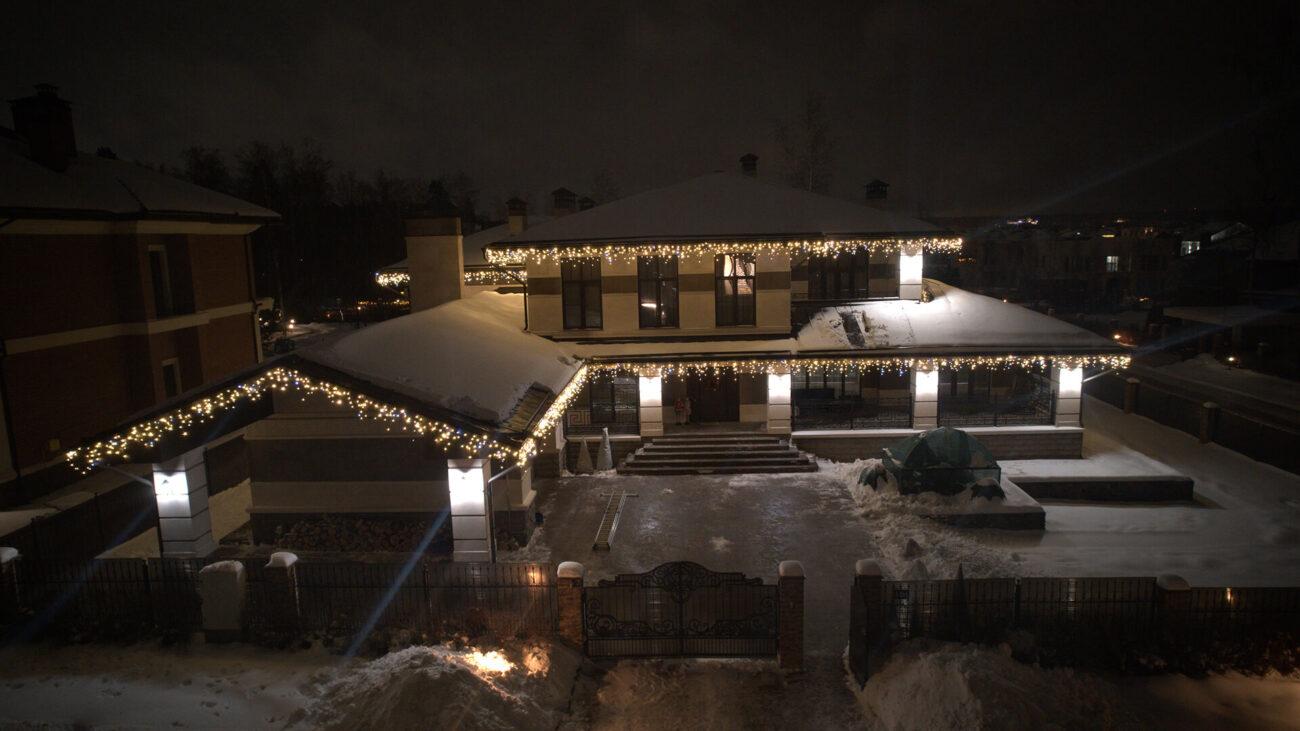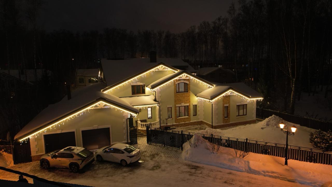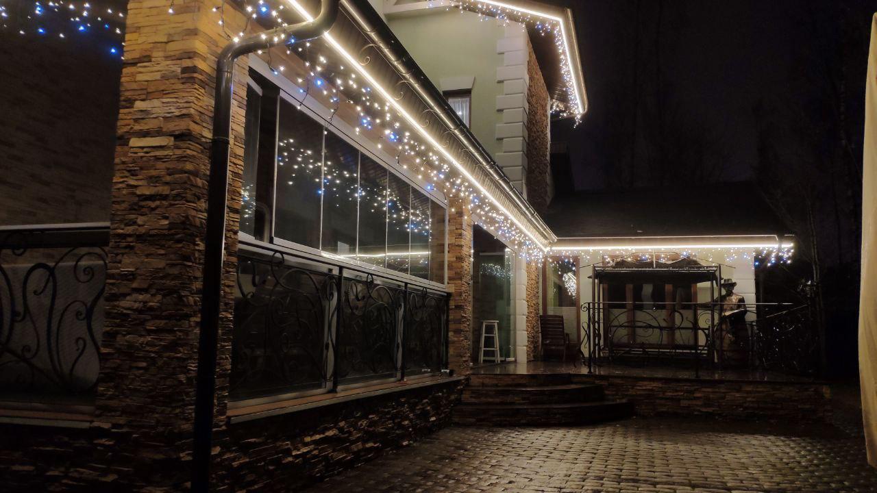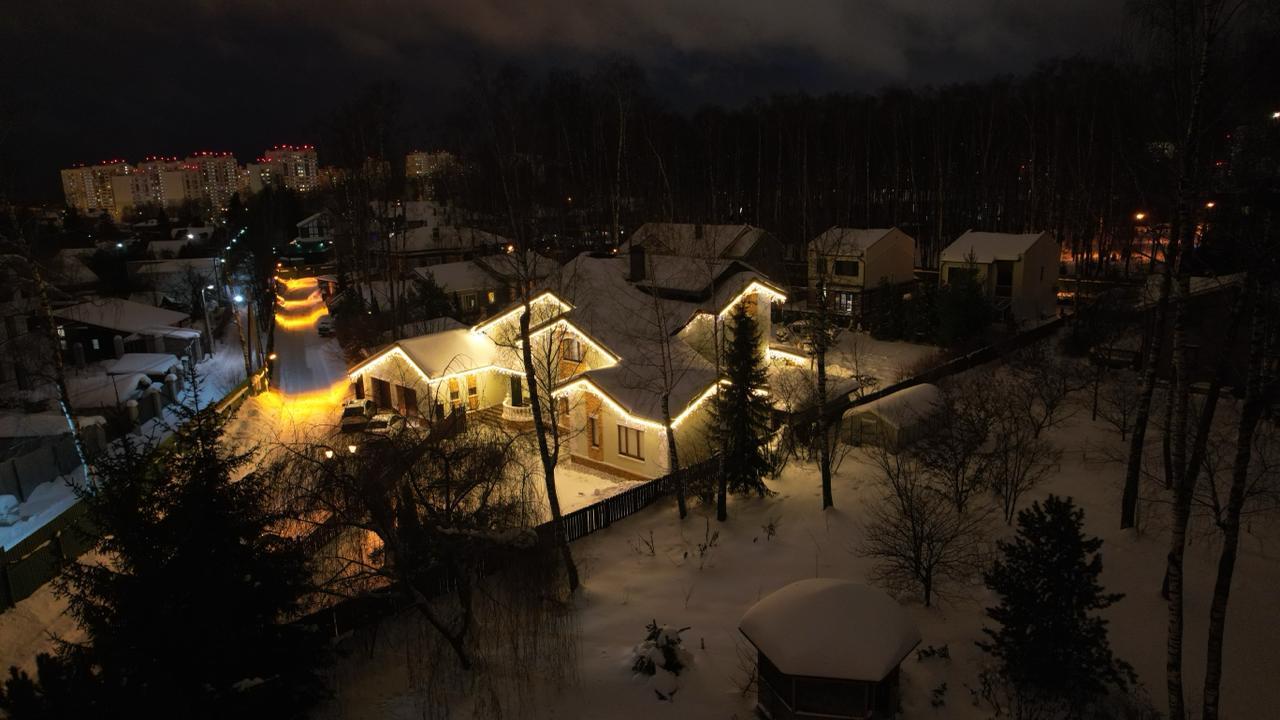 Клиент обратился в декабре — хотел сделать подарок своей семье к праздникам. Задача: украсить дом гирляндами и создать тёплую, праздничную атмосферу. Основные требования — чтобы подсветка выглядела красиво, радовала глаз и прослужила долго. Всё должно работать стабильно, без необходимости постоянного ухода или ремонта.