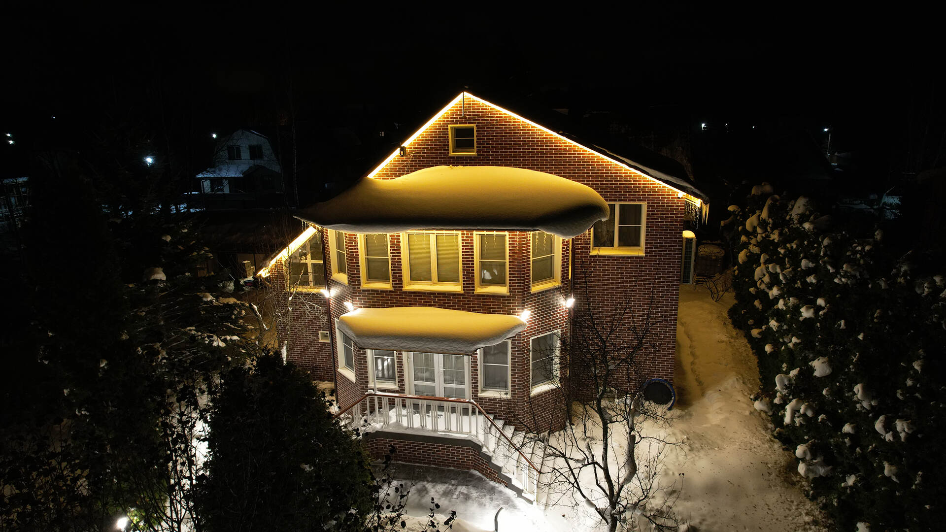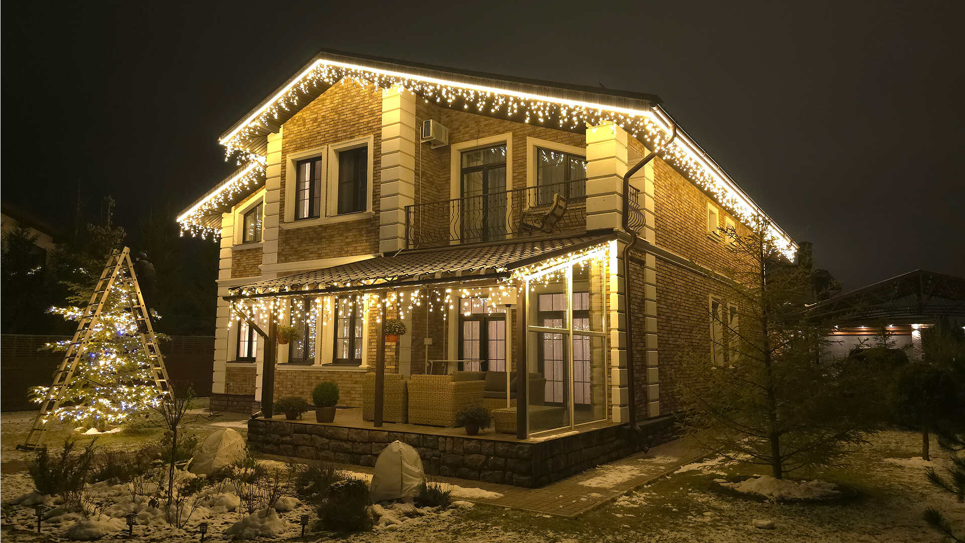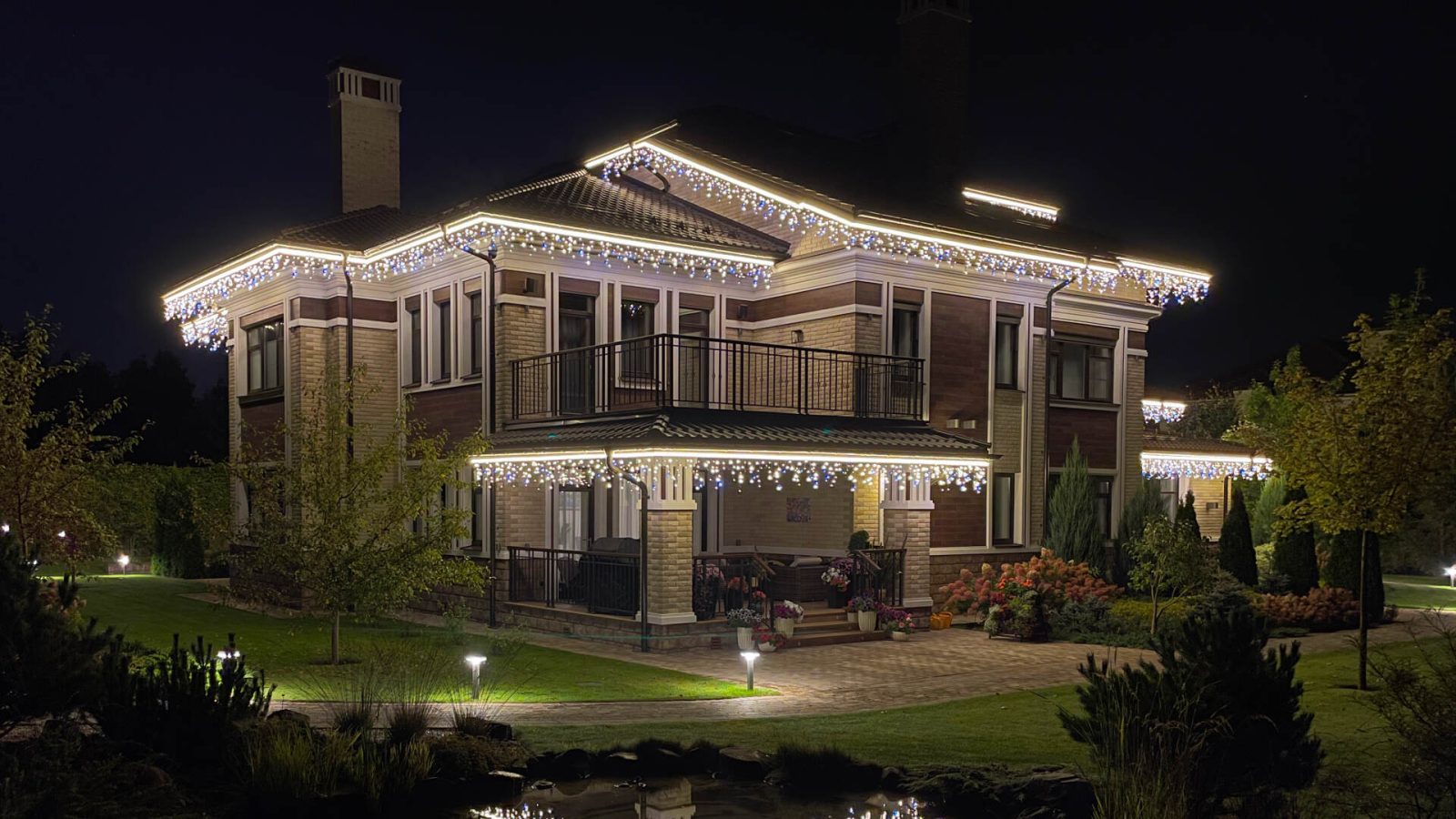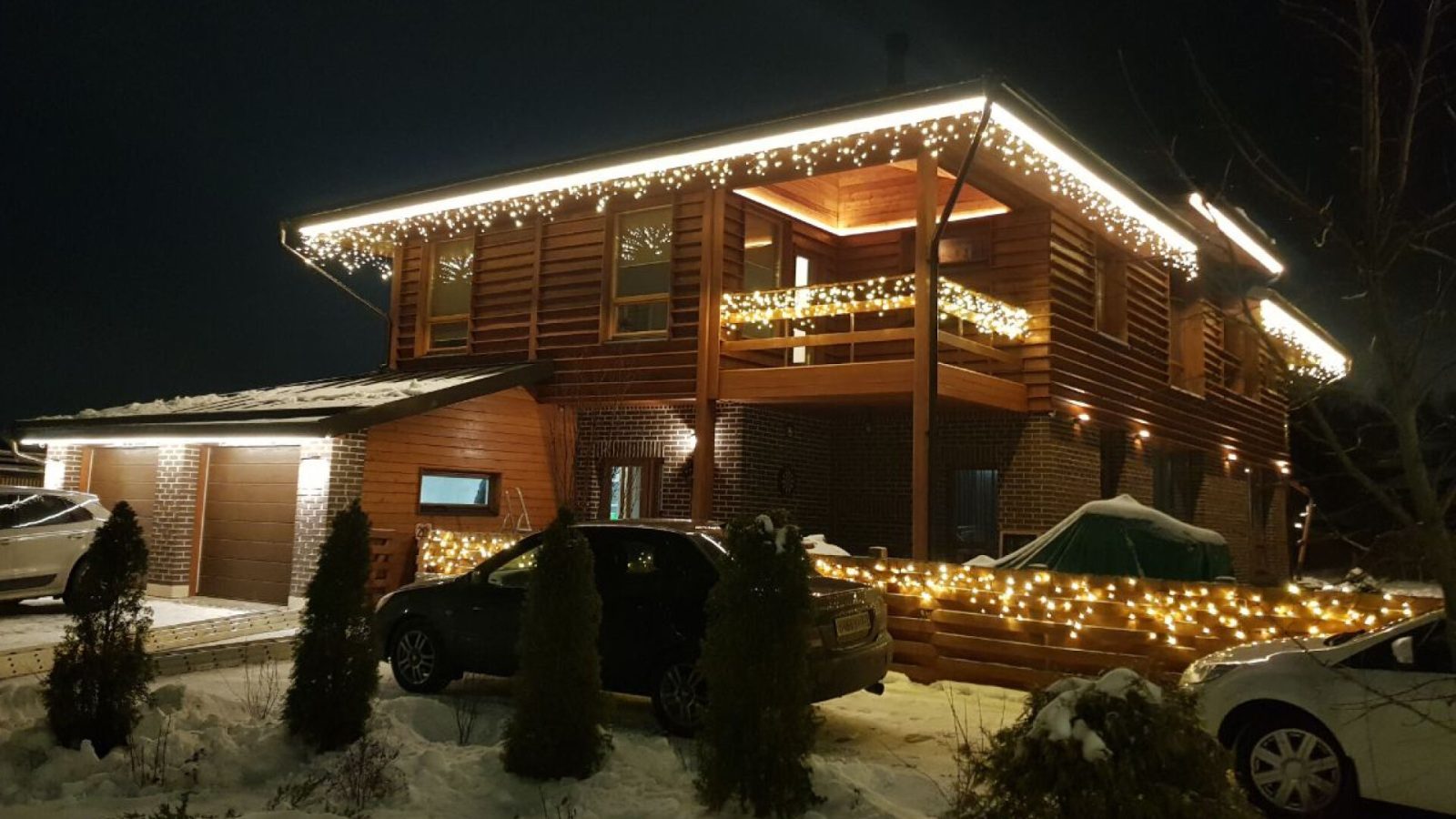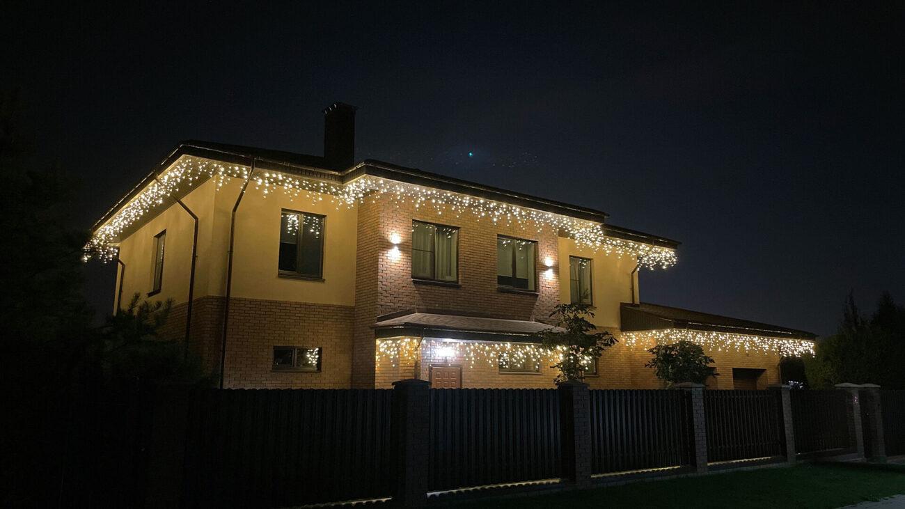 Клиент обратился в декабре — хотел сделать подарок своей семье к праздникам. Задача: украсить дом гирляндами и создать тёплую, праздничную атмосферу. Основные требования — чтобы подсветка выглядела красиво, радовала глаз и прослужила долго. Всё должно работать стабильно, без необходимости постоянного ухода или ремонта.