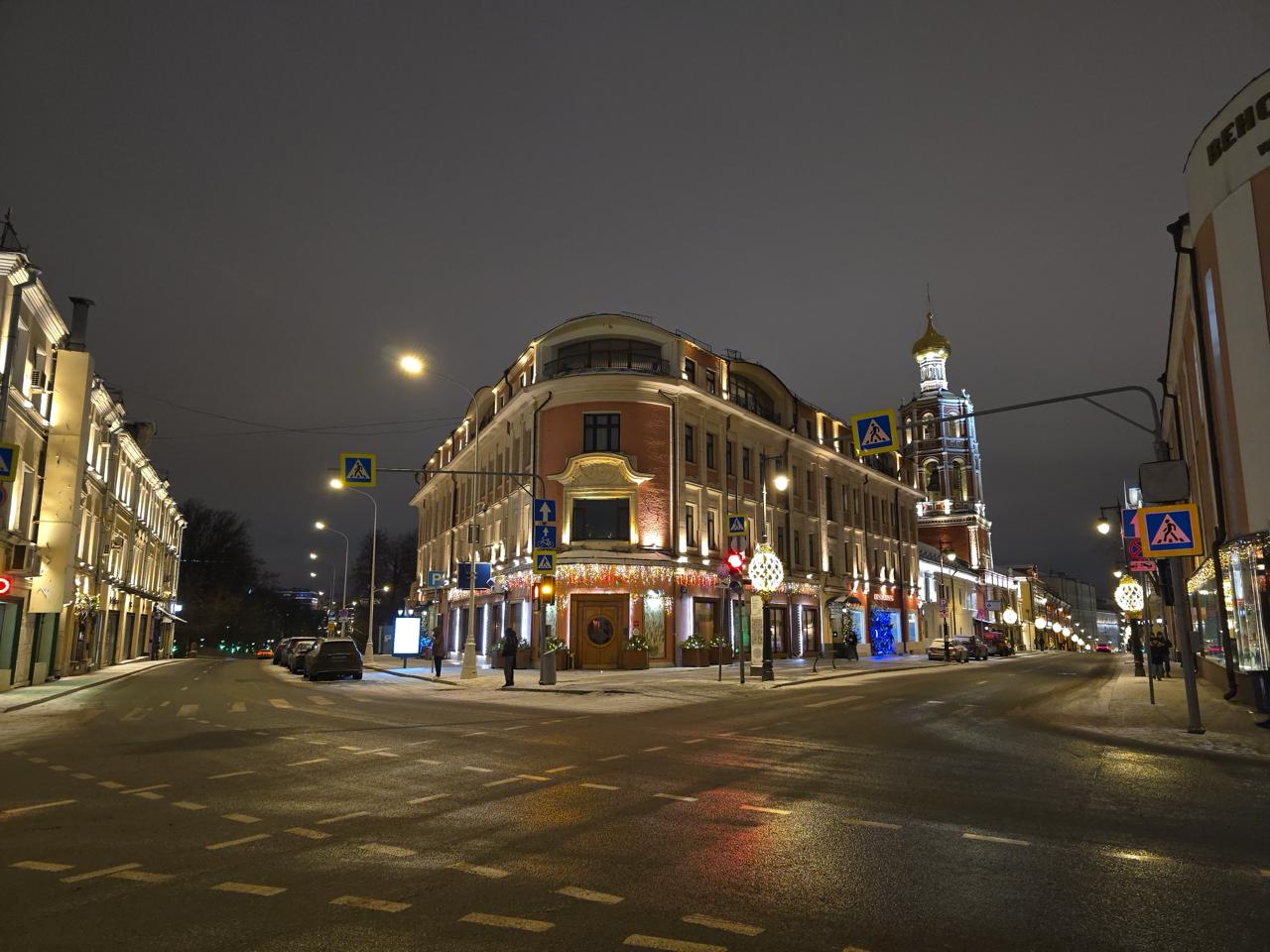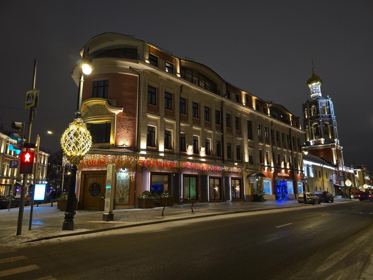 Главная идея — подчеркнуть архитектуру углового здания, сохранив его утончённый облик. Тёплое свечение гирлянд создаёт уют и праздничную атмосферу, а мягкие прожекторы добавляют глубины и делают фасад выразительным даже издалека.