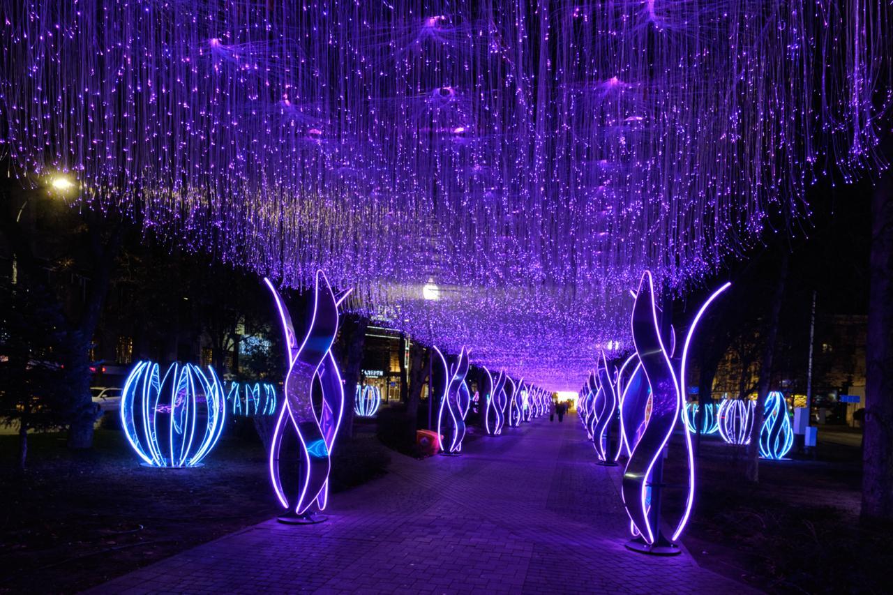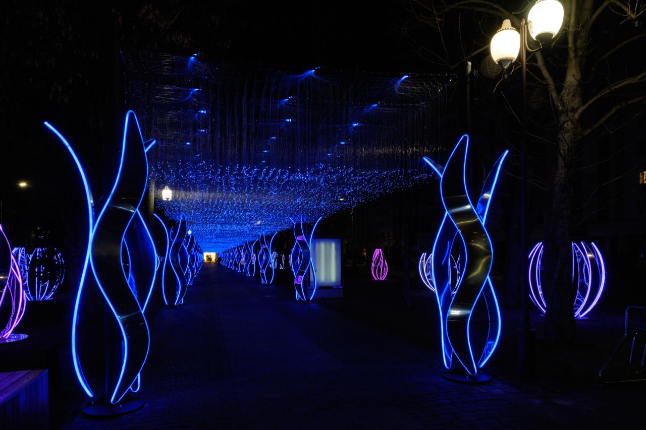 Этот проект показывает, как современные световые технологии способны превратить обычную пешеходную зону в арт-пространство с уникальной атмосферой. Световой тоннель и фигуры стали яркой достопримечательностью города, подчёркивая праздничное настроение и создавая новые точки для прогулок и фотосессий.