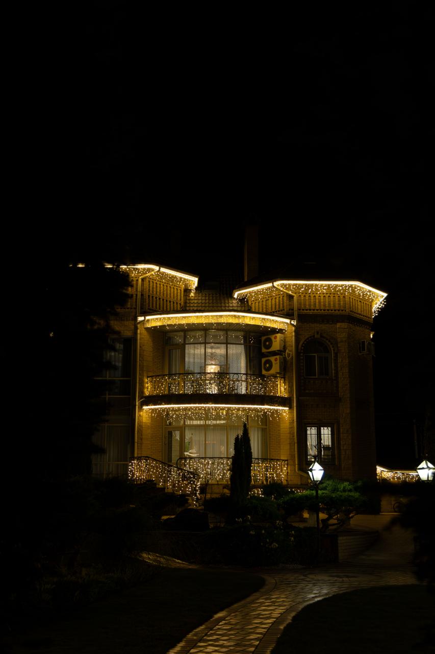Задача оформления — подчеркнуть архитектуру дома и создать цельное световое пространство, которое гармонично выглядит как днём, так и вечером. Важно было добиться равномерного свечения без излишней яркости, сохранив уют и эстетику фасада.