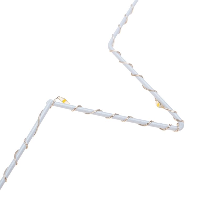 Срок службы светодиодов — до 30 000 часов, что гарантирует несколько сезонов использования. Металлический провод тонкий, но прочный. Он сохраняет форму, оставаясь гибким, а серебристый цвет придаёт дополнительный декоративный эффект.