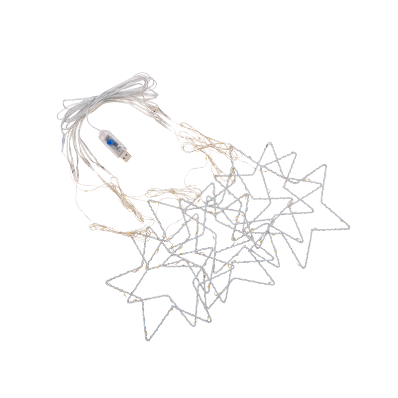 Лёгкий серебристый провод почти не заметен, поэтому создаётся эффект парящих в воздухе звёзд.