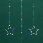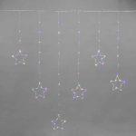 Гирлянда-занавес из тонкой «росы» со звёздными фигурами — это эффектный элемент праздничного оформления. Она объединяет в себе воздушность тонких проводов и выразительность фигур-звёзд, которые становятся главным декоративным акцентом.