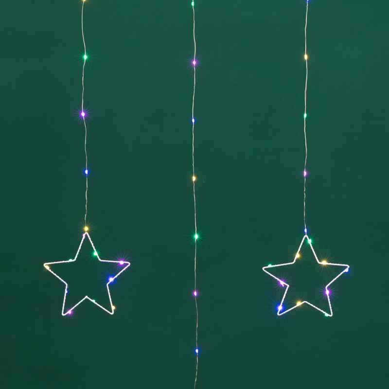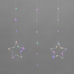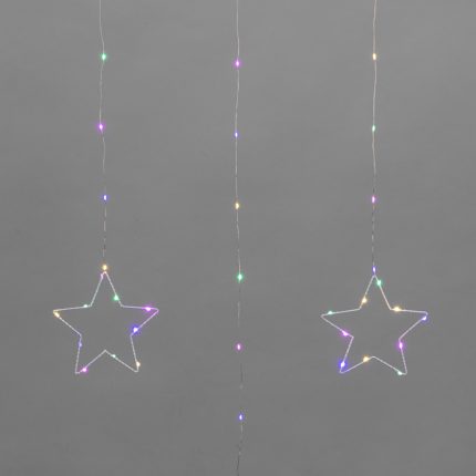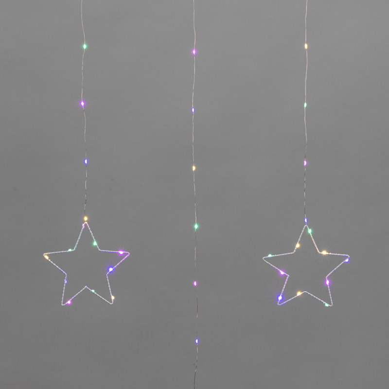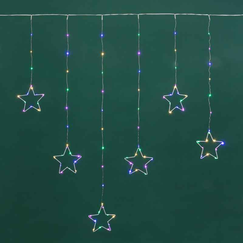 Гирлянда Занавес из росы со Звёздами 1.5х1.15 м Мультиколор с Динамикой, 230В, 156 LED, Провод Серебристый Металл, IP20