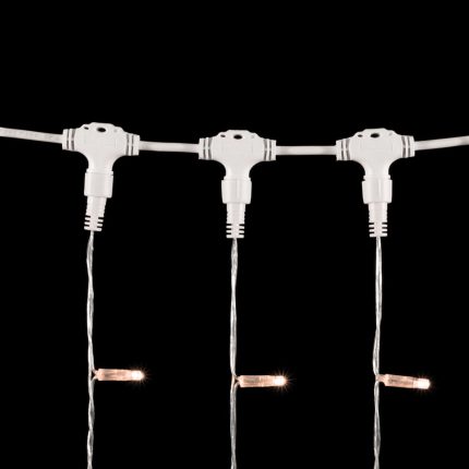 Рабочее напряжение 230 В позволяет использовать гирлянду без дополнительных адаптеров — достаточно стандартной розетки. ПВХ-провод прочный и гибкий, устойчив к перегибам. Рабочая температура от +1 до +35 °C делает изделие надёжным в условиях квартиры, офиса или торгового зала.