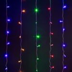 Гирлянда Занавес 1.5х1.5 м Мультиколор с Мерцанием, 220В, 160 LED, Провод Прозрачный ПВХ, IP20