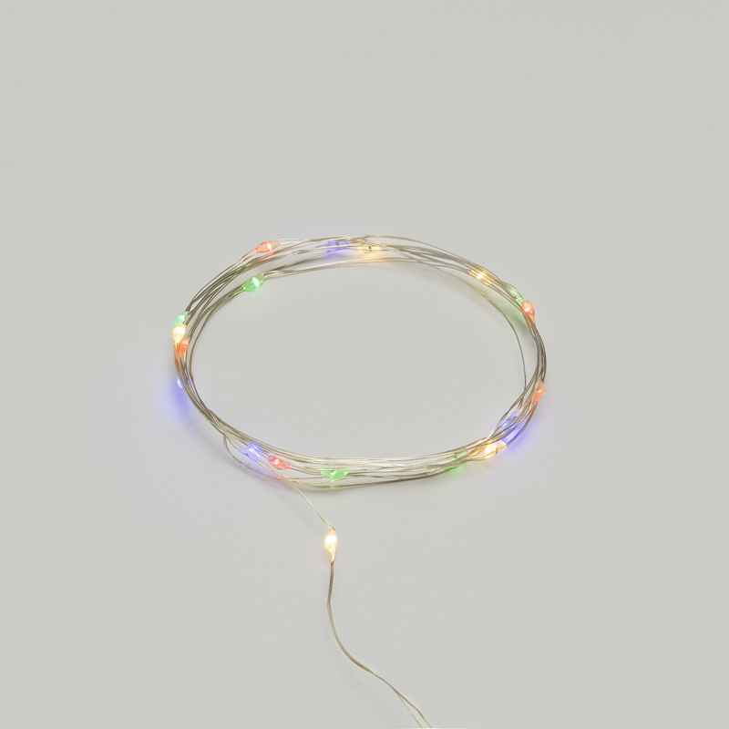 Компактная и яркая гирлянда «Роса» длиной 2 м с 20 разноцветными светодиодами создаст праздничное настроение в любом интерьере. Питание от батареек и гибкий серебристый провод позволяют декорировать ею ёлки, композиции, мебель и любые зоны без привязки к розетке.