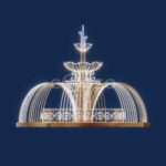 Новогодний светодиодный фонтан — это масштабная уличная световая фигура, созданная для того, чтобы преображать городскую среду, создавать атмосферу праздника и привлекать внимание с первого взгляда. Его форма напоминает настоящий фонтан: мощная струя «света» словно взлетает вверх и распадается золотыми волнами. Мерцающее свечение делает композицию «живой» и динамичной, а визуальный эффект притягивает как детей, так и взрослых.