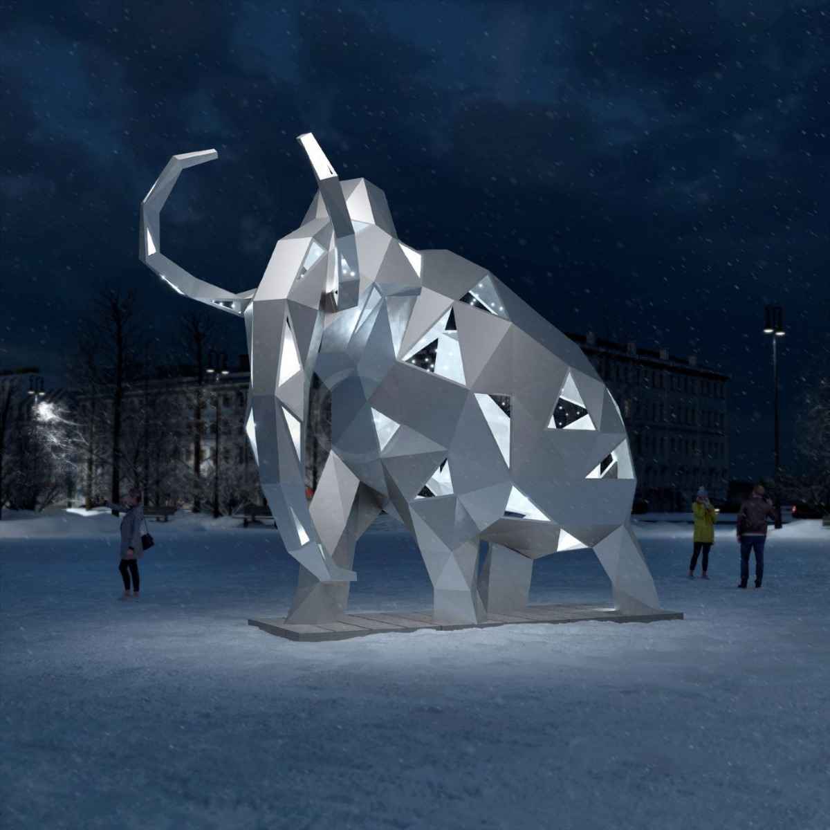 Полигональная световая фигура мамонта — центр новогоднего притяжения
