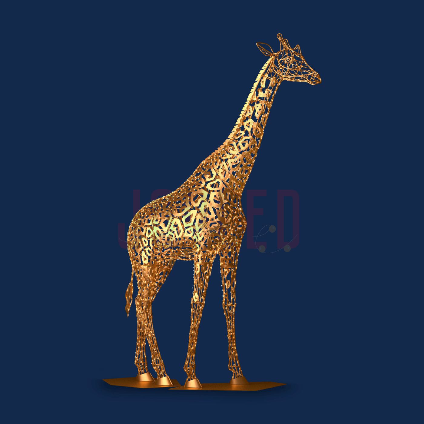Объёмная световая фигура «Жираф Ротшильда» — арт-объект премиального класса для улиц, парков, входных зон ТЦ и бизнес-центров. Высота 5 метров, золотое свечение, IP65, алюминиевый каркас с покраской. Устойчив к морозу и осадкам. Производство и монтаж под ключ от JOYLED.