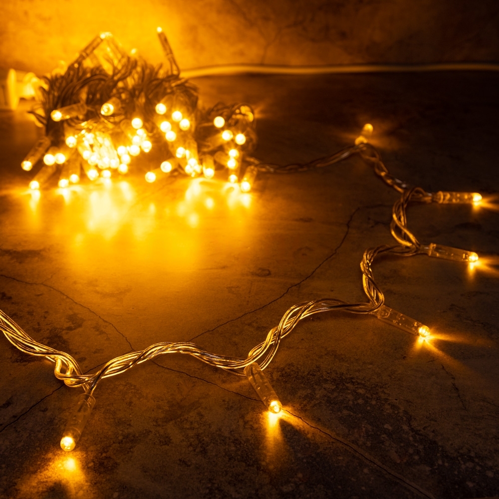 Гирлянда-нить длиной 10 метров с насыщенным жёлтым свечением — это классический способ добавить уюта, тепла и настроения в любой проект. Она подходит как для уличного использования, так и для интерьера. Благодаря прочному прозрачному ПВХ-проводу её почти не видно днём, а вечером светодиоды создают сплошную световую линию — без излишней яркости, но с эффектом “живого” света.
