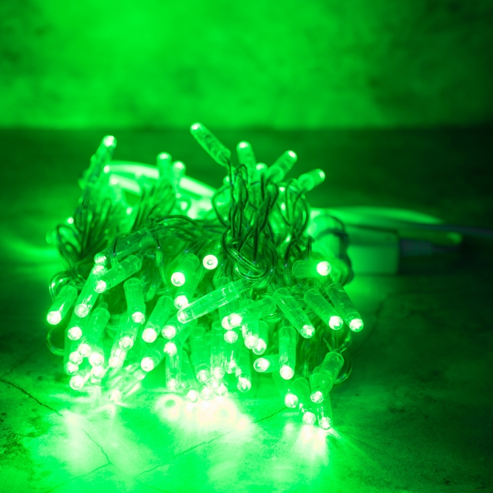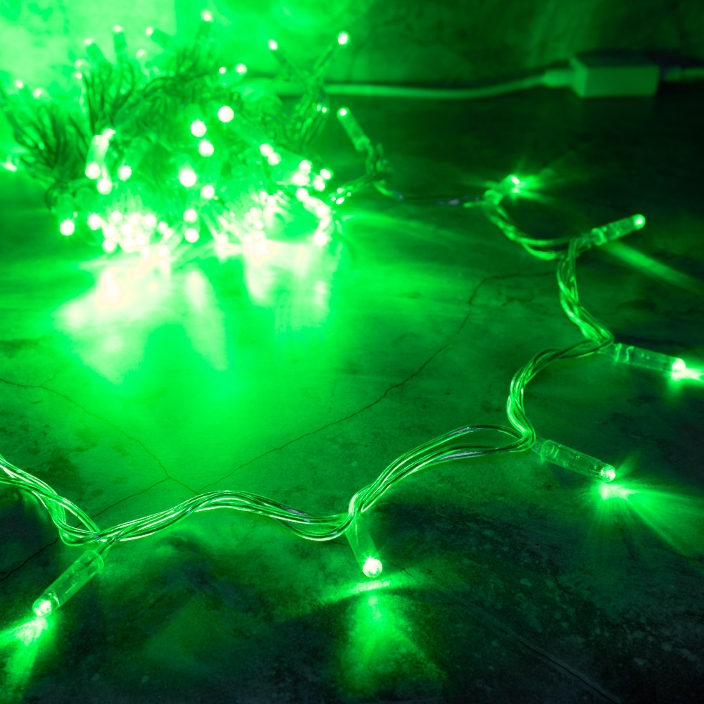 Гирлянда Нить 10 м Зелёная Статика, 100 LED, Прозрачный ПВХ, IP65, LEON