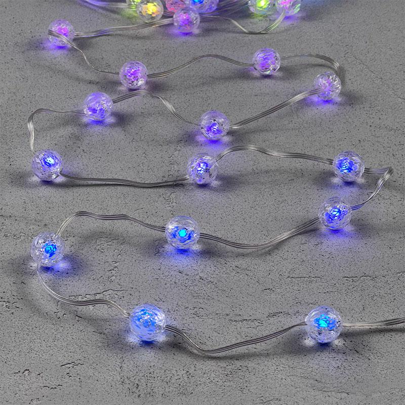 Разноцветная гирлянда с 100 яркими шариками диаметром 20 мм. 39 режимов свечения, питание от батареек (5 В), управление в комплекте. Подходит для улицы и помещений. Отличное решение для праздников, фотозон и декора деревьев.