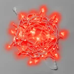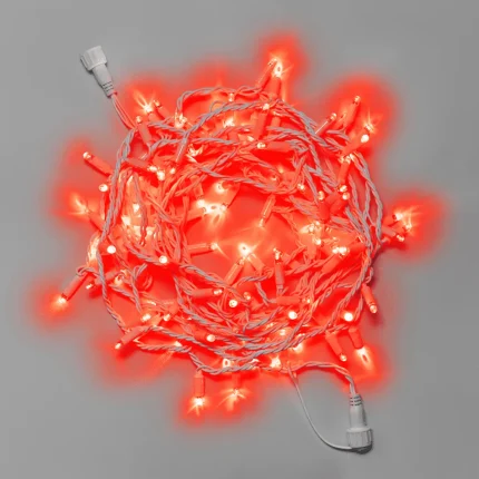 Гирлянда длиной 10 м с ярким красным свечением. Надёжный белый каучуковый провод 3.3 мм, защита IP65. Подходит для улицы: деревья, заборы, ели, перила. Морозостойкая, долговечная, готова к монтажу на весь сезон.