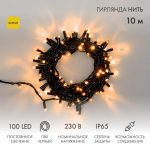 Гирлянда Нить 10 м Жёлтая Статика, 100 LED, Чёрный ПВХ, IP65, NN