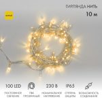 Гирлянда Нить 10 м Жёлтая Статика, 100 LED, Прозрачный ПВХ, IP65, NN