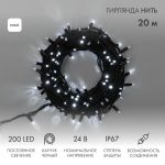 Гирлянда Нить 20 м Белая Статика, 200 LED, Чёрный Каучук, IP67, NN