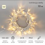 Гирлянда Нить 10 м Тепло-Белая с Мерцанием, 100 LED, Белый ПВХ, IP65