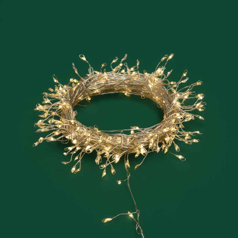 Эта гирлянда — словно тонкая нить света, разбросанная по комнате. 250 светодиодов на невесомом серебристом проводе создают эффект настоящей светящейся росы или новогоднего фейерверка. Подходит для украшения ёлок, интерьеров и фотозон — там, где важна не яркость, а атмосфера уюта и волшебства.