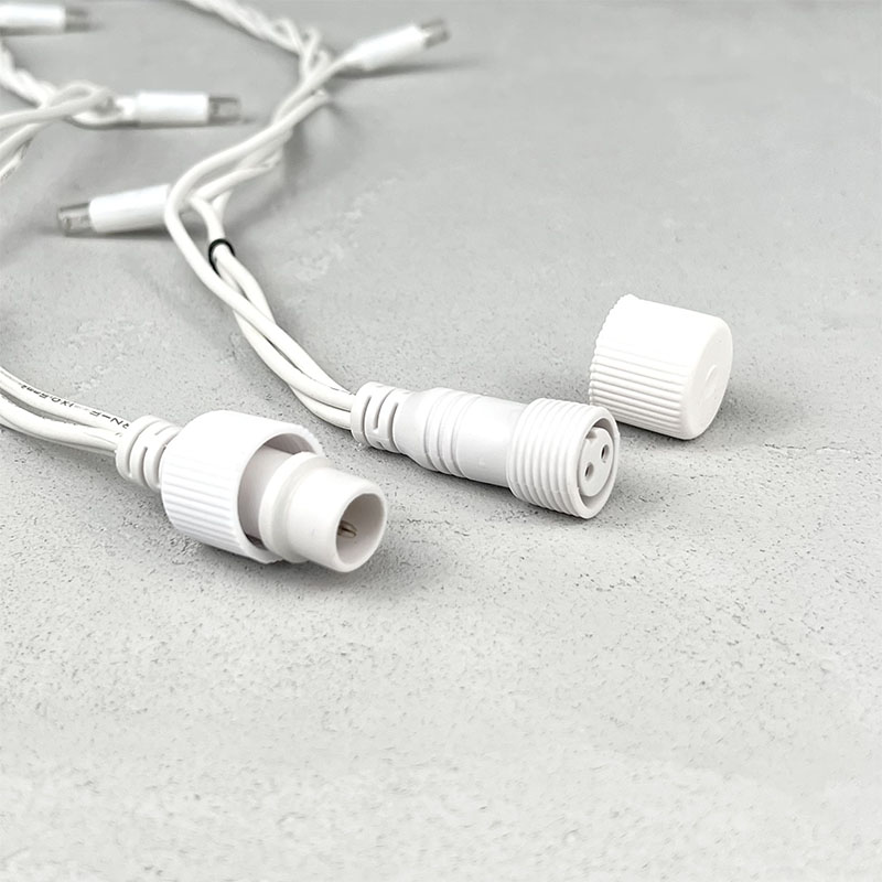 Базовая длина — 10 м, при этом гирлянды соединяются в цепь до 100 метров (до 10 штук). Герметичные соединения надёжно защищены от влаги и не портят внешний вид.
