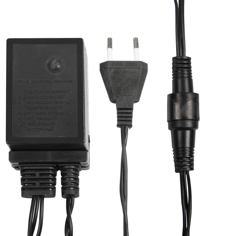Гирлянда оснащена встроенным контроллером с кнопкой, переключающей эффекты: