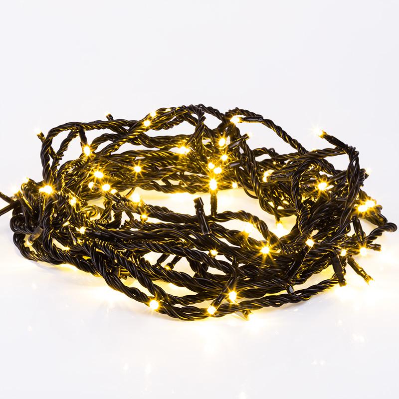 Гирлянда Нить 10 м Золотая с динамикой, 100 LED, Чёрный ПВХ, IP65, 230 В