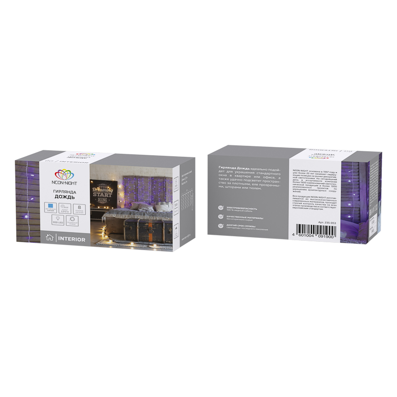 Занавес удобно закрепить на карниз, потолок или стену — прозрачный провод остаётся незаметным, и всё внимание сосредоточено на свете. В комплекте идёт кабель питания длиной 3 метра, что позволяет подключать гирлянду без лишних удлинителей.