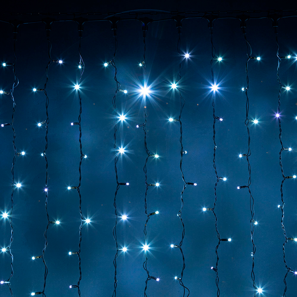 Гирлянда Занавес 2x3 м в холодном белом цвете — универсальное решение для уличного и интерьерного декора. Эффект «flash» создаёт мягкую динамику, когда отдельные светодиоды кратковременно вспыхивают, напоминая блеск льда или зимних звёзд. Такой свет привлекает внимание, но остаётся изысканным и не перегружает визуально композицию.