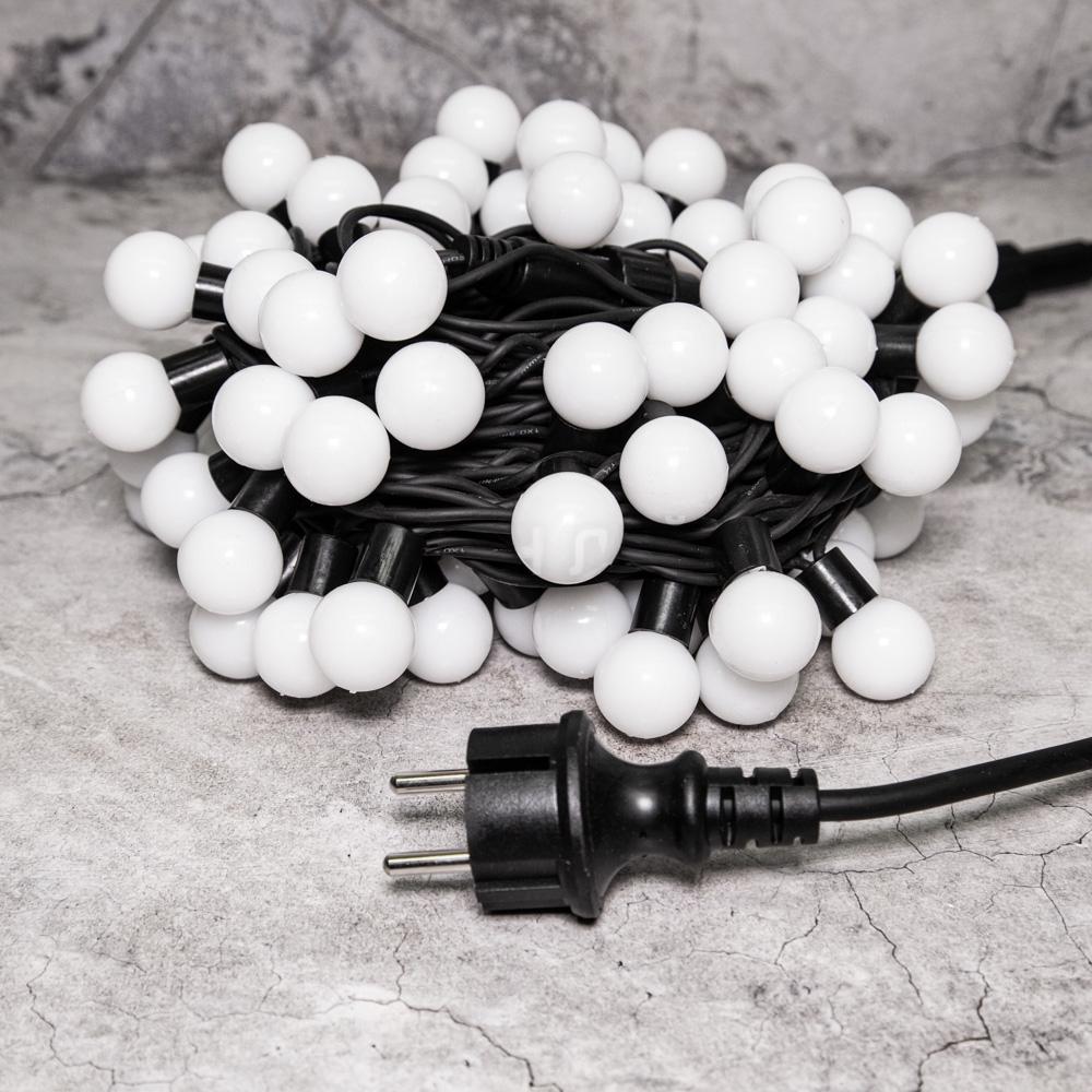 Гирлянда Нить 10 м Белая Статика, 100 LED, Чёрный Каучук, IP44