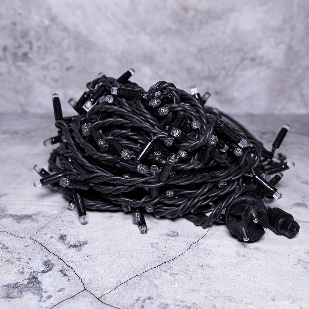 Гирлянда Нить 20 м Белая Статика, 200 LED, Чёрный Каучук, IP65, LEON