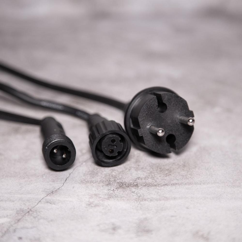 Гирлянда изготовлена на прочном каучуковом проводе 3×3.3 мм — это промышленный стандарт, рассчитанный на долгие годы службы: