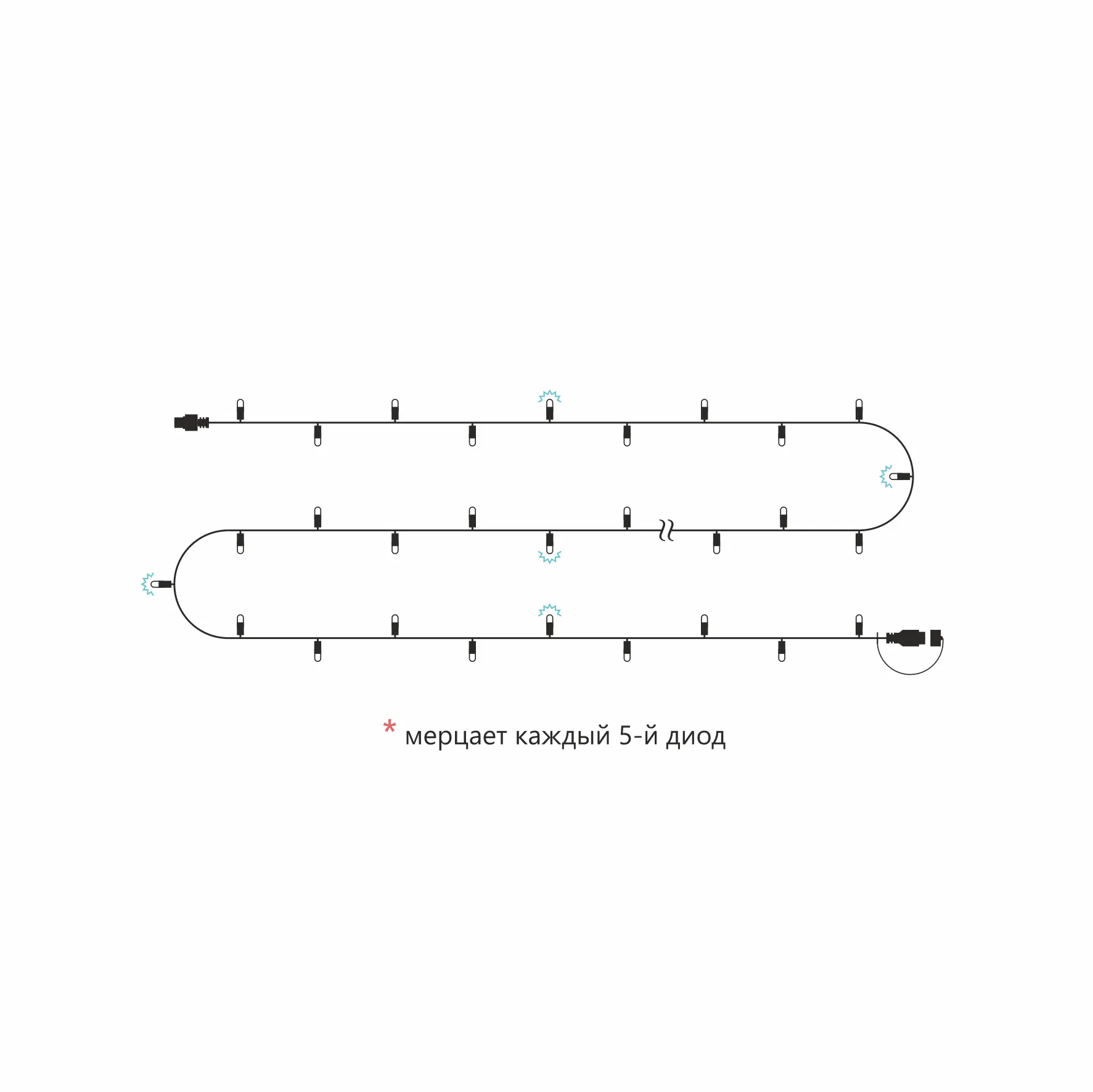Гирлянды этой серии можно соединять в одну цепь до 8 штук (80 метров). Это удобно, если вы планируете подсветить: