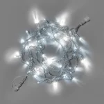 Гирлянда 10 м с холодным белым светом и эффектом мерцания. 100 LED, прозрачный ПВХ, защита IP65. Универсальна для деревьев, фасадов, перил. Соединяется в цепь до 100 м.