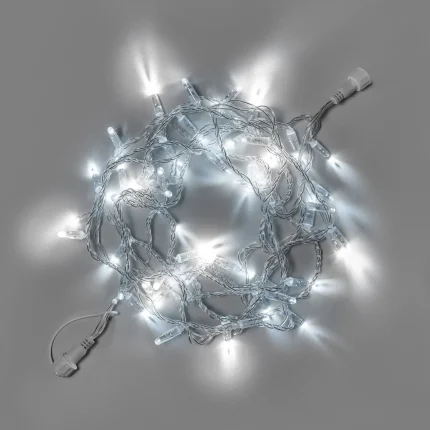 Гирлянда состоит из двух отрезков по 5 метров с соединением посередине. Это удобно при обходе углов, подсветке окон или симметричных конструкций. 100 диодов равномерно распределены по всей длине — без световых пробелов и “тёмных зон”.