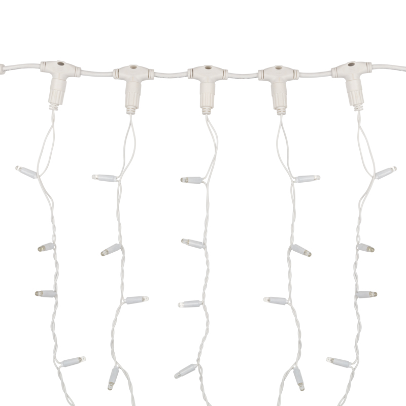 Возможность соединения до 5 гирлянд позволяет создать протяжённые занавесы для больших фасадов или масштабных световых инсталляций. Это удобно как для частных заказчиков, так и для коммерческих объектов — торговых центров, гостиниц и ресторанов.