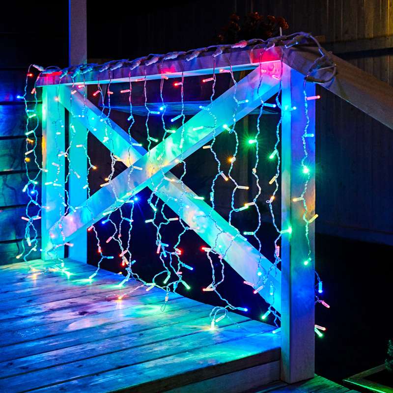 Гирлянда Занавес 2×1,5 м, Мультиколор Статика, 192 LED, Провод Прозрачный ПВХ, IP65
