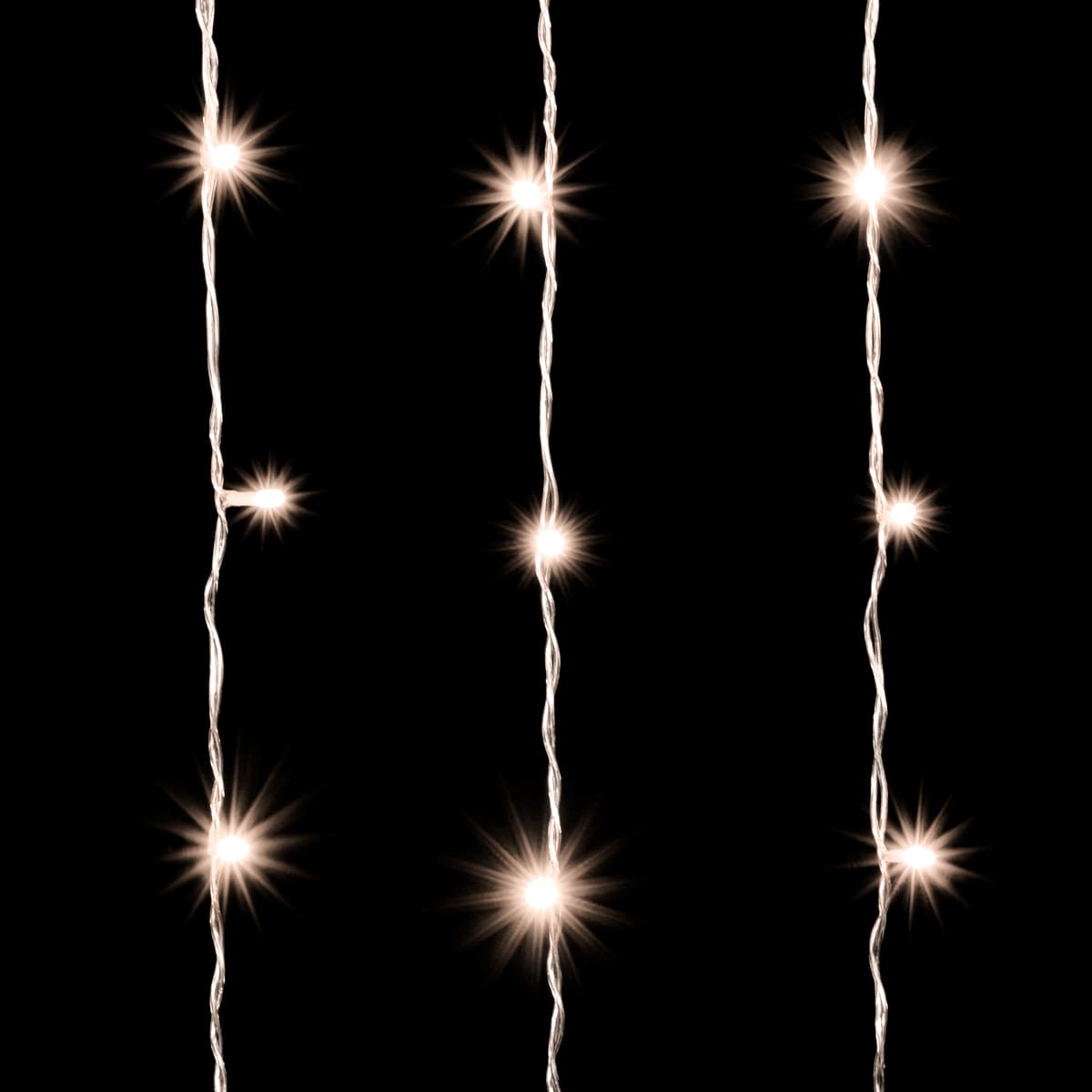 Тёплый белый свет считается классикой в праздничном и архитектурном освещении. Он мягкий, комфортный для глаз и универсальный — подходит как для камерной новогодней атмосферы, так и для круглогодичной подсветки фасада. Облегчённая гирлянда-занавес 2×2 м создаёт аккуратный световой поток, который равномерно распределяется по поверхности. Это решение подойдёт для домов, кафе, ресторанов, гостиниц и городских объектов.