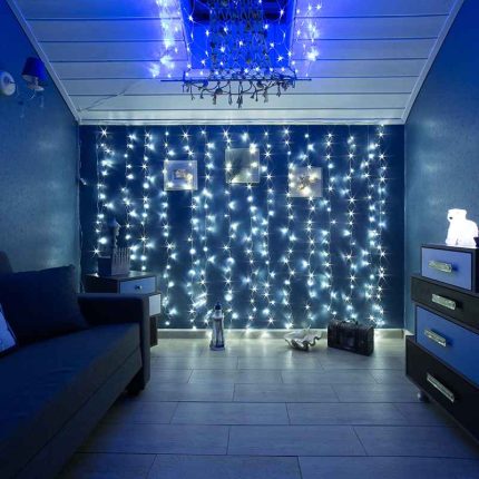 Такой занавес одинаково уместен в домашнем интерьере, для корпоративных мероприятий и коммерческого оформления витрин или залов. Благодаря размеру 2×3 м он закрывает большую поверхность и создаёт цельный световой фон.