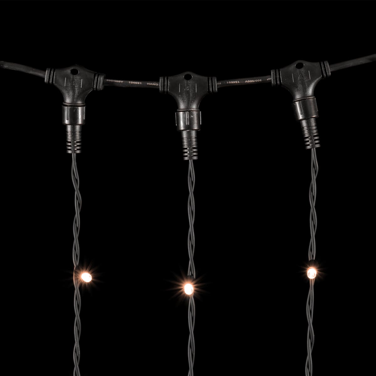 Эта гирлянда разработана специально для наружного применения. Чёрный каучуковый провод прочен, устойчив к морозу и ультрафиолету, поэтому гирлянда надёжно работает в любую погоду.