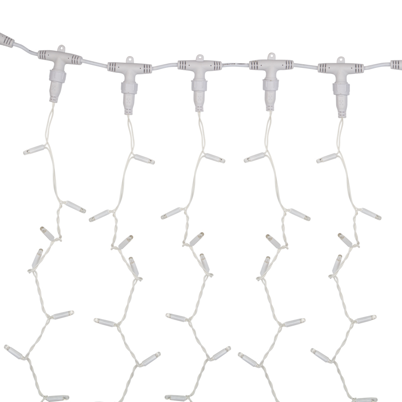 Возможность соединить до трёх занавесов в цепь даёт свободу в создании больших световых инсталляций, экономит время на установке и упрощает разводку питания.
