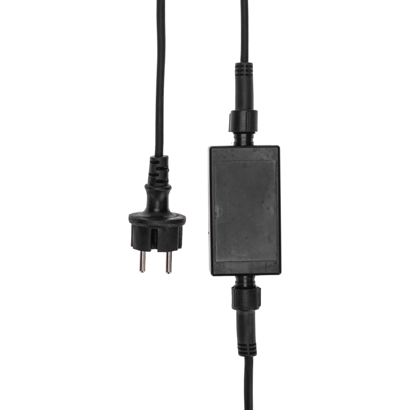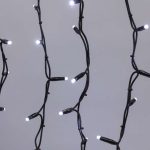 В комплекте идёт кабель питания длиной 1,5 м, позволяющий сразу приступить к установке. Гирлянду можно соединять в цепь до 4 штук, формируя обширные световые полотна. Крепление осуществляется при помощи пластиковых стяжек, кронштейнов или монтажных клипс. Чёрный провод гармонично сливается с тёмными фасадами, заборами или деревьями.
