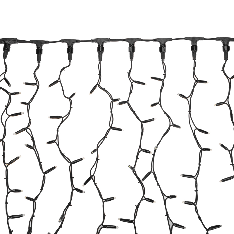 Профессиональная гирлянда-занавес 2×3 м с 760 белыми светодиодами на прочном чёрном каучуковом проводе. Класс защиты IP67 гарантирует работу в любых погодных условиях. Подходит для фасадов, колонн, заборов, деревьев, а также интерьеров. В комплекте кабель питания 1,5 м. Возможность соединения до 4 гирлянд в одну цепь для масштабного декора. Рабочий диапазон температур — от -50 до +40 °C.