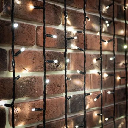 С гирляндой-занавес 2×6 м с эффектом «водопад» вы получаете яркое, динамичное и долговечное оформление, которое будет радовать вас и гостей в любое время года.