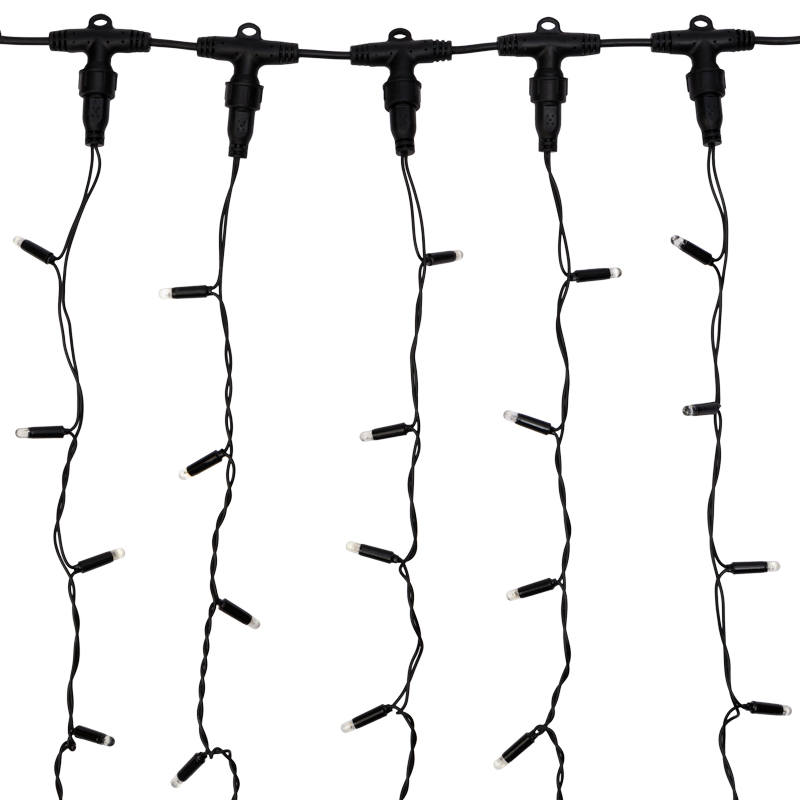В гирлянде 20 вертикальных нитей длиной 6 м, равномерно распределённых по горизонтали 2 м. Всего 768 LED, что обеспечивает высокую яркость и равномерное свечение.