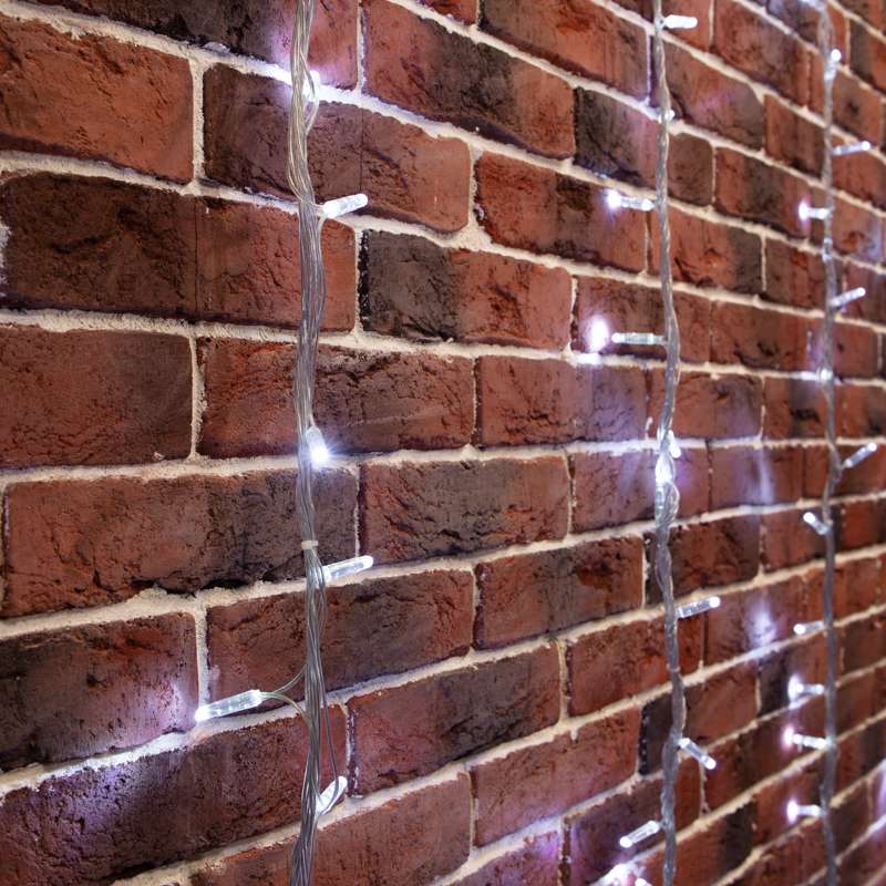 Данная гирлянда подходит для оформления фасадов, заборов, входных групп, колонн и деревьев. Благодаря прозрачному кабелю и универсальному белому свету она гармонично вписывается в любое оформление — от минималистичных современных зданий до классических архитектурных фасадов.